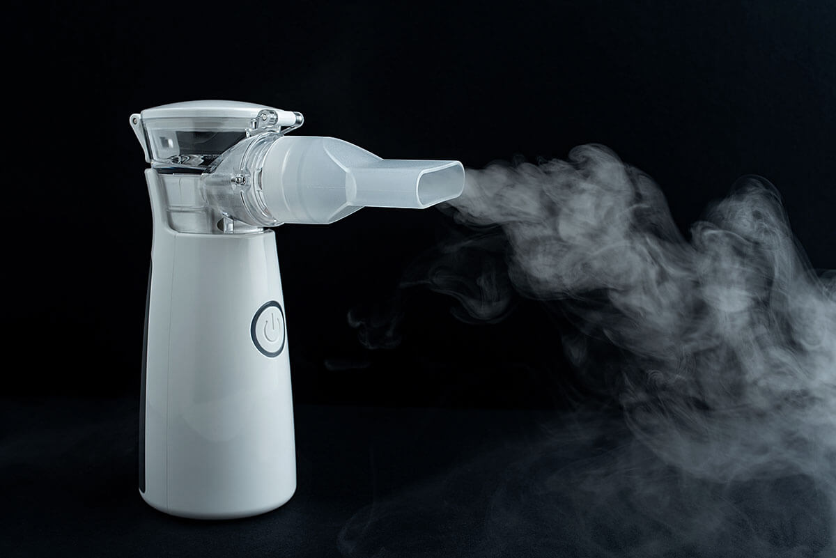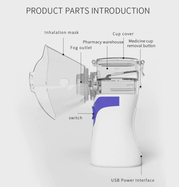The nebulizer atomizes liquid into tiny particles that enable the drug to enter the respiratory tract and lungs when inhaling.